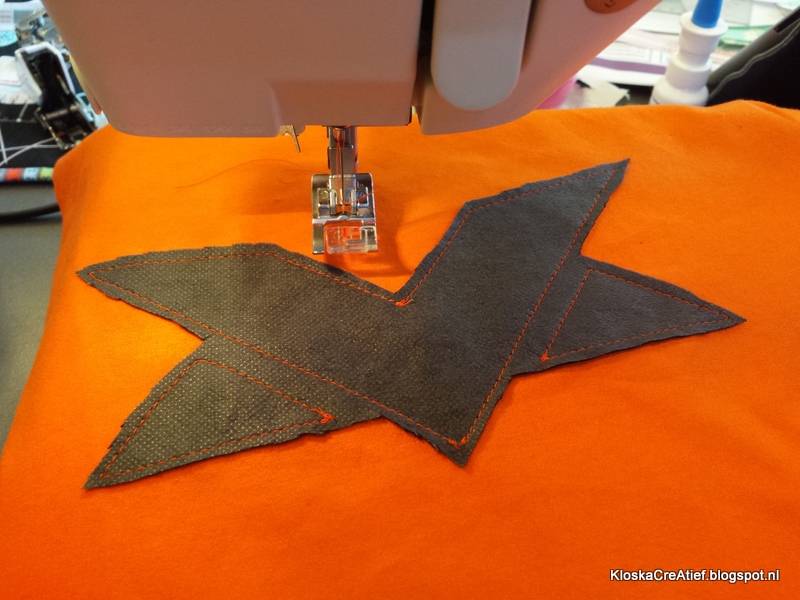 Toen dat klaar was kon ik het papier wegscheuren en de oranje tricot wegknippen. Best ff spannend...