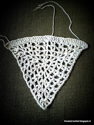 Uiteindelijk heb ik toch besloten om de nieuwe serie weer met vasten te maken, dat is toch meer mijn ding. Dit maal wel met streepjes en bolletjes erbij, met dank aan de tutorial van de Crochet Club.